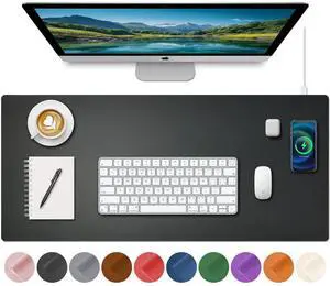 Desk Mat with Wireless Charging, Black Mouse Pad with Wireless Charger, Desk Pad Matt for Desktop, Mousepad Gaming Large Mouse Pad, Leather Compute for Keyboard and Mouse, 32" x 16"