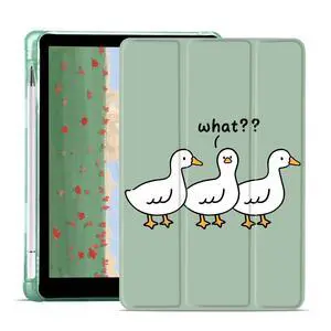JOYLAND Cartoon Doubt Ducks Pad Case for 10.2 Inch iPad 9th/7th/8th Generation with Pencil Holder, Auto Wake/Sleep for iPad 2021/2020/2019 Cover, Foldable Smart Stand Green Leather Anti-Scratch Case