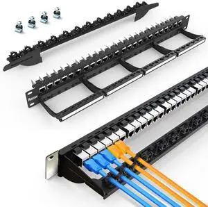 PBAEGAV Patch Panel 48 Port with Cat6A Keystone JackEC Listed UTP with Cable Management and Support Bar for 10 Gigabit Ethernet 110 or Krone Impact Tools Compatible(CAT6A,48Port