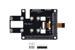 PCIe to Dual M.2 HAT+ Adapter for Raspberry Pi 5, Dual NVMe SSD Support & High-Speed Boot