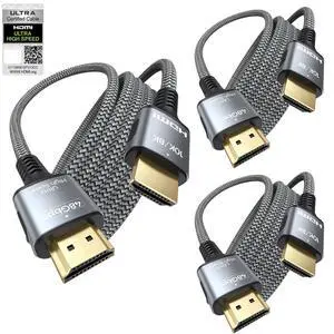 Certified HDMI Cable 6FT 3-Pack, 8K HDMI 2.1 Cord for Home Theater, Mlutipack Home Cinema Cables 48Gbps with eARC & 8K@60Hz, Shielded HDMI Cable for Soundbar, Roku/Apple TV, PS5, Xbox and Projector