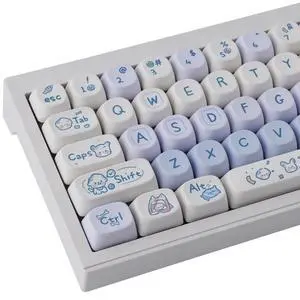 TIMSEKER Cute Blue and White PBT Keycap Set, Dye Sublimation FOA Profile Round Keycap for ANSI ISO Layout Mechanical Gaming Keyboard, 145 Keys