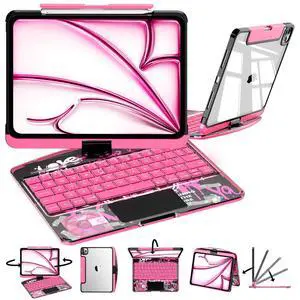 Keyboard Case for iPad Pro 11-inch (M5/M4 2025/2024), Clear Wireless iPad Pro 11 Inch Case with Keyboard Multi-Touch Trackpad, Battery Level Visualization with 360 Rotatable & Pencil Holder, Pink