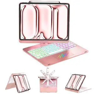 lelego Swivel Keyboard Case for iPad pro 13 Case with Keyboard(M5/M4, 2025/2024)& iPad Air 13 inch case(M3, 2025/M2, 2024) &iPad Pro 12.9 (6th/5th/4th/3rd Gen),Trackpad,Rainbow Backlit-Metallic Pink