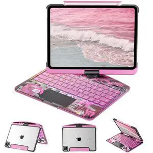 Keyboard Case for iPad Air 11-inch & 10.9-inch (Air 5th/4th Gen) and iPad Pro 11-inch (1st4th Gen), 360 Rotating Clear Case with Trackpad, 7-Color Backlit, LCD Power Display, Pencil Holder, Pink