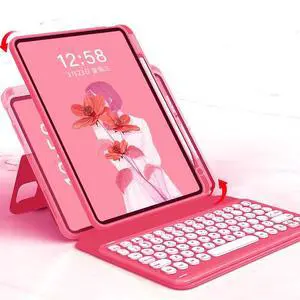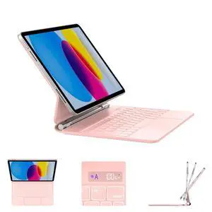 iPad Keyboard Case,for 2022 iPad 10th Generation 10.9-inch and 11th Generation 11-inch(A16,2025)Transparent keyboard case featuring RGB backlighting, 360 rotating trackpad, and stylus slot,Pink