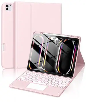 kaidisen Backlit Keyboard for iPad Pro 11 inch (M5/M4) 2025/2024 Case with Mouse and Detachable RGB Colorful Backlight Color Keyboard Case,Pink+White