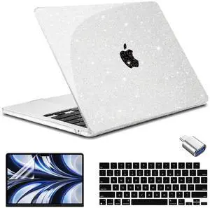 Conbovo Case for MacBook Air 13.6 inch M2 M3 M4 2022 2024 2025 A2681 A3113 A3240, Plastic Hard Shell Case Keyboard Cover Screen Protector USB C to USB 3.0 Adapter, Sparkly Clear