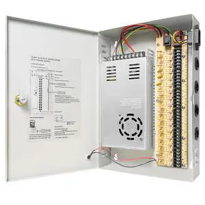 18 Channel 12 Volt DC Output 30A CCTV Distributed Power Supply Box for Security Camera with AC Plug and Lock for Security Cameras, DVRs, CCTV Power Supply (30A 18-Channel)