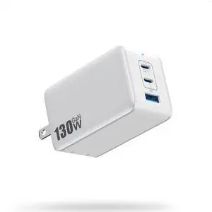 130W USB C Charger Block,GaN 3-Port Compact Wall Charger,Foldable Fast Charging Station,PD 65W USB C Laptop Charging for MacBook Pro/Air, Dell XPS, iPhone 16/15/14/13,iPad Pro,Galaxy S24/S23 (White)