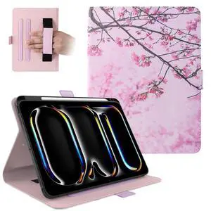 Dteck for iPad Pro 11" (M4/M5) 2024/2025 Release Smart Folio Case with Adjustable Stand/Auto Sleep Wake/Pencil Holder/Hand Strap/Magnetic Strap Closure, PU Leather Protective Cute Cover, Pink Florals