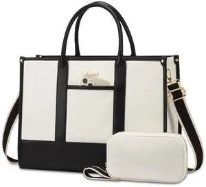 LOVEVOOK Laptop Tote Bags for Women Work Bag 17.3 inch Large Professional Teacher Purse Lightweight Computer Bag Briefcase Business Office, Beige-black