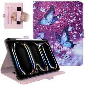 Dteck for iPad Pro 13-inch M4/M5 (2024/2025) Smart Folio Case with Auto Sleep Wake/Pencil Holder/Adjustable Stand/Grip Hand Strap, PU Leather Protective Anti-Scratch Cute Cover Shell, Purple Butterfly