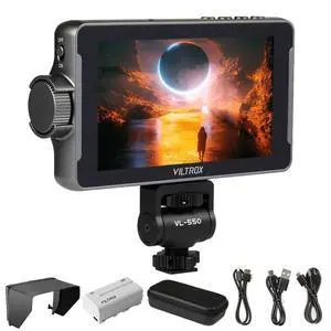 VILTROX DC550 Pro 5.5 Inch High Bright 1200nit Touch Screen Director Camera Field Monitor with Sunshade Hood,Battery,Storage Bag
