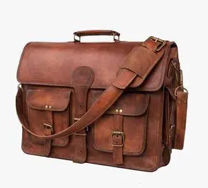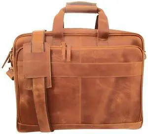 THE M&G BAGS Genuine Leather Messenger Bag for Men & Women, Handmade Vintage Laptop Shoulder Bags with Adjustable Strap, Crossbody Briefcase for Office College Travel - 18 Inch, Brown