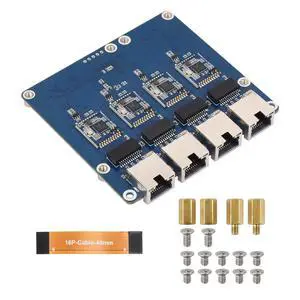 Waveshare PCIe to 4-Ch Gigabit ETH Board (B) Compatible with Raspberry Pi 5/RPi OS, Driver-Free, Plug and Play