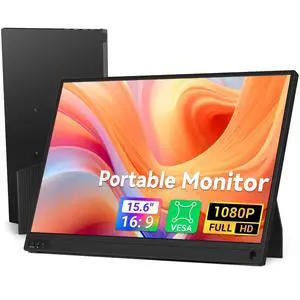 HotYeah Portable Laptop Monitor, 15.6-in 1080P FHD Travel Monitor USB-C HDMI External Computer Screen FreeSync IPS w/Kickstand, Extra External Display for Laptop PC Mac Phone Tablet Switch Xbox PS5