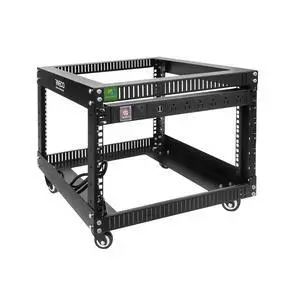 RIVECO 6U Server Rack with Wheels Open Frame Networking Rack+ PDU 8 Outlets Set Black