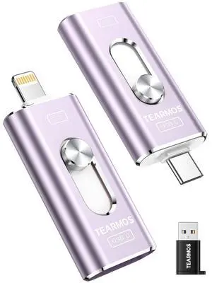 TEARMOS 512GB Photo Stick for iPhone Flash Drive, Memory Stick Phone Storage for Photos and Videos Files Backup, Compatible with iPhone iPad Android PC, Plug & Play, No App Required (Light Purple)