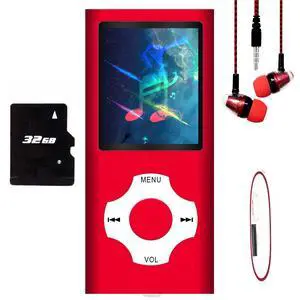 MP3 Player, Hotechs MP3 Music Player with 32GB Memory SD Card Slim Classic Digital LCD 1.82'' Screen MINI USB Port with FM Radio, Voice Record (Red)
