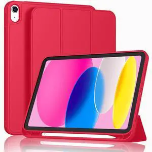 ToaPoia Case for iPad (A16) 11 Inch 2025/iPad 10th Generation 10.9 Inch 2022, Slim Trifold Stand Protective Cover with Pencil Holder and Soft TPU Back,Support Auto Sleep/Wake (Red)