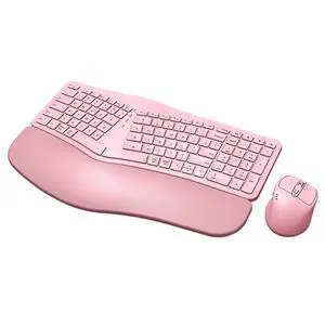 MK960 Ergonomic Wireless Keyboard Mouse Combo, Bluetooth/2.4G Split Design Keyboard with Palm Rest and 4 Level DPI Adjustable Wireless Mouse Multi-Device, Rechargeable, for Windows/Mac/Android(Pink)