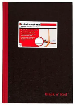 Black n' Red Casebound Hardcover Notebook, 11-3/4" x 8-1/4", Black/Red, 96 Ruled Sheets, Sold as 6 Pack (D66174)