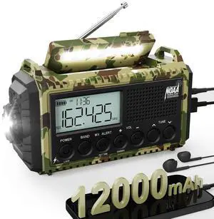 AUTO NOAA Emergency Weather Radio with Clear Signal, 2X Faster Hand Crank & 12000 Battery Operated, SW/AM/FM Portable Solar Radio with 6-Way Power, Flashlight, Phone Charger, SOS for Home, Outdoor