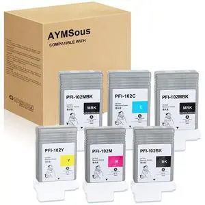 AYMSous PFI-102 Ink Cartridge Replacement for Canon PFI-102 PFI102 PFI-102MBK PFI-102BK PFI-102C PFI-102M PFI-102Y for Canon imagePROGRAF iPF500 510 600 605 610 650 655 700 710 720 750 (6-Pack)