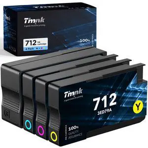 Timink 712 Ink Cartridges High Yield Replacement for 712XL Combo Pack, Compatiable with DesignJet T650 T630 T230 T210 Studio Plotter Printers (4 Pack, 80-ml Black + 29-ml Cyan/Magenta/Yellow)