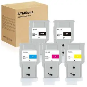 AYMSous Compatible Ink Cartridge Replacement for Canon PFI-320 PFI320 for Canon imagePROGRAF IPF TM-200 IPF TM-205 IPF TM-300 IPF TM-305(5-Pack MBK/B/C/M/Y)