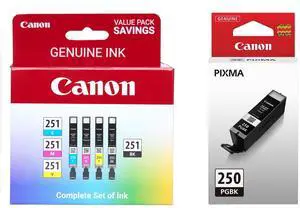 Genuine Canon PGI-250 (6497B001) CLI-251 (6513B004) Color (Black, Cyan,Magenta,Yellow) Ink Tank 5-Pack