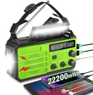 Emergency Radio with Solar & Hand Crank Radio 22200mWh (6000mAh) NOAA Emergency Weather Radio Alert, SOS Alarm, AM/FM, Hand Crank Flashlight, Compass for Tornado, Winter Storm, and Survival Kits
