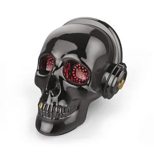 YSEECHENS Skull Bluetooth Speaker Novelty Skeleton Unique Wireless Portable Speakers with Eyes Lights Halloween Decoration (Black)