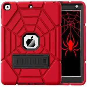 Grifobes for iPad 6th/5th Generation Cases 2018/2017, for iPad Air 2 Case 2014 9.7 inch, Heavy Duty Shockproof Rugged Protective i Pad 5 6 Gen 9.7" Case with Stand (Black+Red)