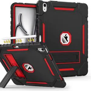 Grifobes Case for iPad Air 13-inch (M3/M2) 2025/2024, Heavy Duty Shockproof Rugged Protective Cover with Pencil Holder/Built-in Stand for i Pad Air 13" (Black+Red)