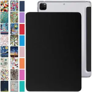iPad PRO 12.9 Inch 4th [ Pro 12.9 4 Generation 2020 ] A2229 A2069 MY3K2LL/A MY3J2LL/A MY2H2LL/A MY2J2LL/A Trifold PC Lightweight Smart PU Leather Protective Hard Back Cover - Black