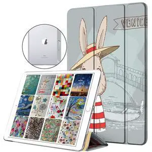 DuraSafe Cases for iPad Air 3 2019 10.5 Inch [ Air 3rd Gen ] A2152 A2123 A2153 A2154 Trifold Printed Hard Smart PC Transparent Back Cover - Rabbit Cartoon Print