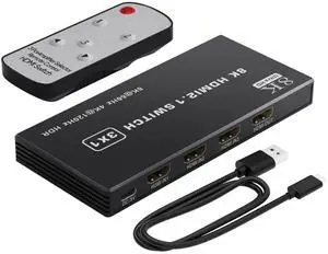 KVM Switch HDMI 4K@60Hz for 4 Computers 1 Monitor, KVM Switches 4 Port PC Share Monitor USB 2.0 Keyboard Mouse, KVM Switch 4 Computers Remote Control 2 AAA Batteries and 4 KVM Cables Included