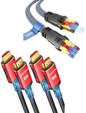 Snowkids Cat 8 Ethernet Cable 15 FT 8K HDMI Cable 2.1 10FT 2-Pack