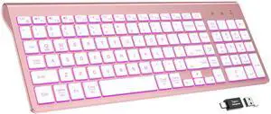 SABLUTE Wireless Keyboard with 7 Colored Backlits, Rechargeable Silent Compact Cordless Computer Keyboard with Low Profile Quiet Light Up Keys for Windows, PC, Linux, Chrome, Mac (Rose Gold)