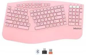 MEETION Ergonomic Keyboard Wireless, Multi-Device Bluetooth Keyboard, Full-Sized Rechargeable Split Computer Keyboards, Wrist Rest for Natural Typing, for Windows/Mac/Laptop/Table/PC, Pink