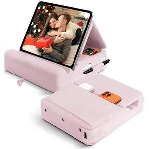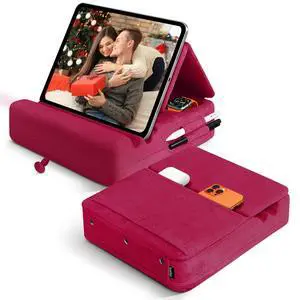MOSISO Tablet Pillow Stand,Soft Tablet Holder for Lap,Tablet Soft Pad Dock with Pockets&Stylus Slot&4 Viewing Angles Compatible with iPad Pro 12.9,11,10.5,9.7,Air Mini 6,5,4,3, E-Reader, Gray