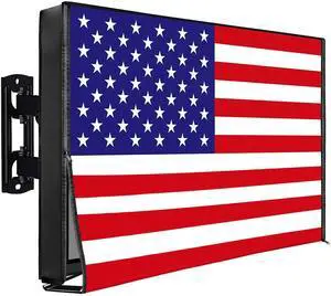 IC ICLOVER Outdoor TV Cover 60-65 Inch, 600D Heavy Duty 4 Season Weatherproof TV Screen Protector with Waterproof Zipper & Remote Control Pocket, Outside Television Enclosure for LED, LCD TVs -US Flag