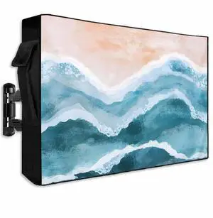 Outdoor TV Cover 70 to 75 Inch Summer Flamingo Cartoon Style Weatherproof TV Screen Protector with Zipper&Pocket Blue Ocean Water Ripple Outside Flat TVs Enclosure