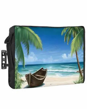 Outdoor TV Cover - Summer Palm Tree Ocean Beach Boat Waterproof and Weatherproof 30"-32" LCD Movable Shield TV Display Screen Protector Outside Television Covers