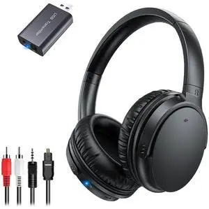 Wireless TV Headphones for Seniors, AptX Low Latency, One Button Design Over-Ear TV Headset with USB Transmitter (Optical/RCA/AUX/USB), Louder & Clearer for Hard of Hearing, 20H Playtime, Plug & Play