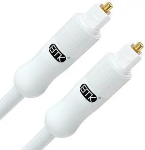 EMK White Optical Audio Cable [30ft/10M] - Digital SPDIF Toslink Fiber Optic Cable for Sound Bar, TV, Home Theater, Blu-ray Player - White, High-Speed, Low-Loss, Gold-Plated Connectors
