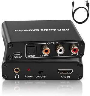 HDMI ARC Audio Extractor, ARC Audio Extractor,Digital to Analog Converter with Optical, Coaxial, RCA & 3.5mm Output, Supports 192KHz, 5.1 Surround Sound for TV and Speakers, Plug-and-Play