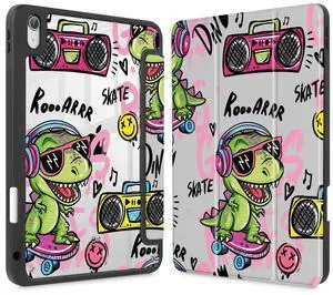 Mektron Case for iPad Air 11 inch (M3 2025 7th /M2 2024 6th), Compatible with iPad Air 10.9" (2022 5th Gen /2020 4th Gen), Buit in Pencil Holder with Shockproof Clear Shell, Cool Dinosaur